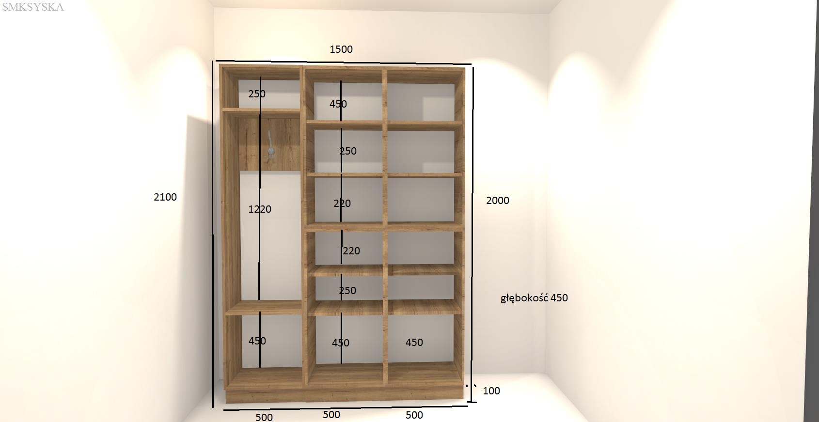 Projekt zabudowy meblowej pomieszczenia - punkt pielęgniarski (rysunki i wizualizacje):
